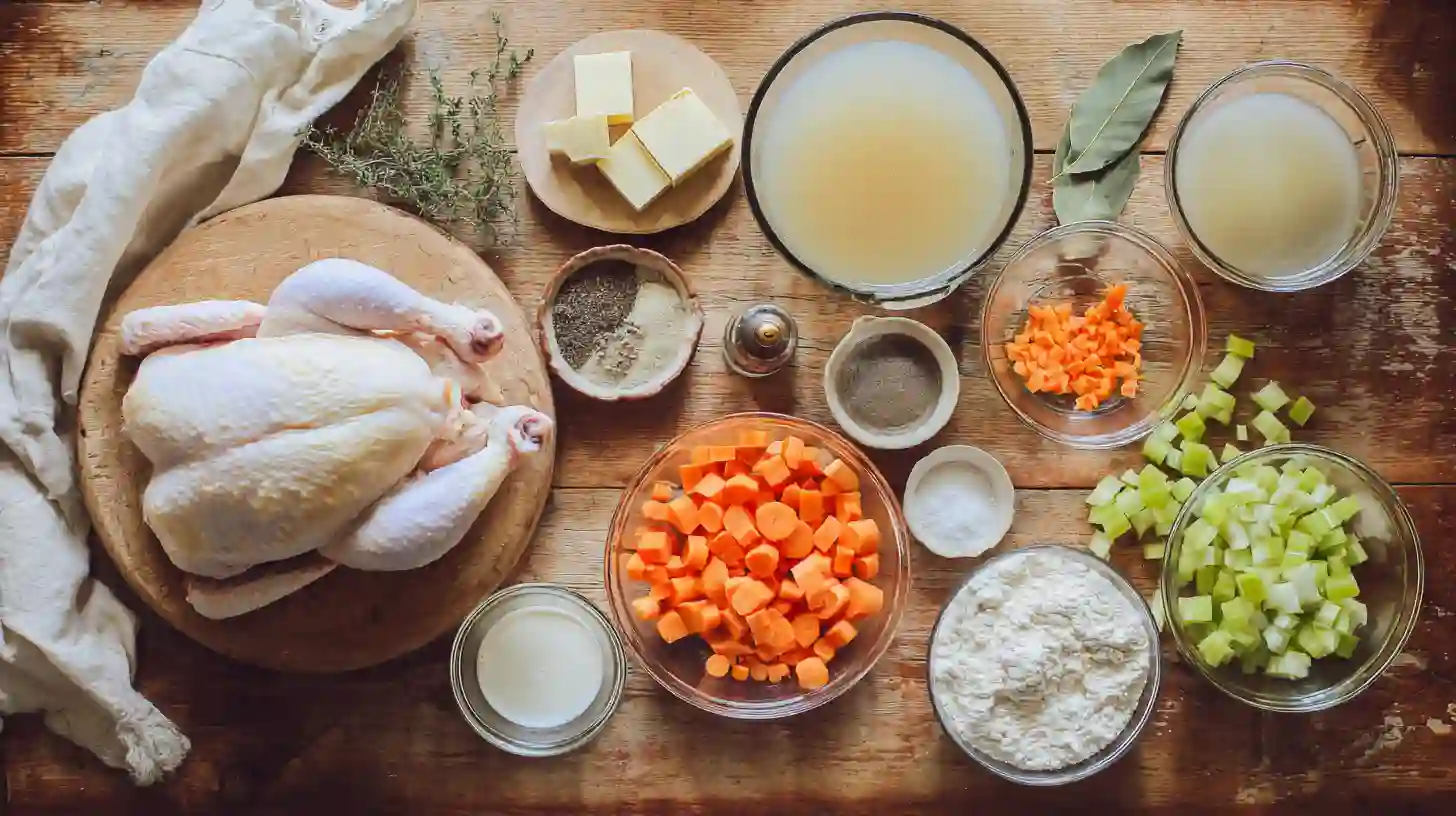 | Whole chicken | 1 (3½–4 lbs) | For meat and homemade broth |